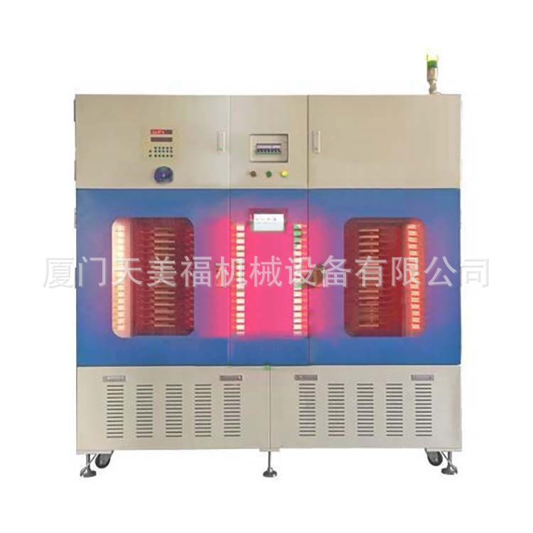 设备主要用于软包装锂离子电池在热压状态下进行化成,能够代替现有电池化成工艺的烘烤整形工艺,同时缩短化成时间,缩减电池制作周期,减少人工,电池在抽气封口后表面更加平整,外观更漂亮,同时完成电池的化成和热压整形。本设备由1 个化成柜 1 套夹具 8 层组成, 化成柜有 16 个 5V10A 通道,本机由机架、化成夹具、电源三部分组成,具有加热、温控功能、充电功能、数据连接、通讯功能安全以及保护功能、烟雾报警等功能。